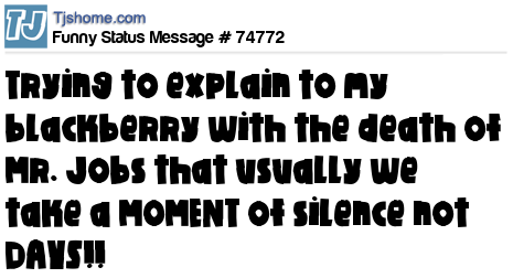 - # 74788 Dear Blackberry, I think it's nice that your honering Steve Jobs death with a 3 day silence.