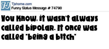 - # 73459 you know it wasn't always called bipolar, it once was called being a b!tch
