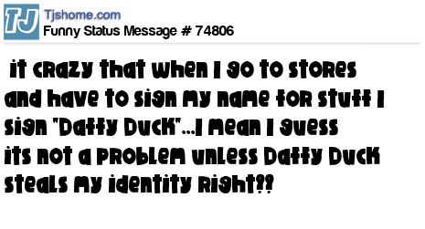 X says it crazy that when I go to stores and have to sign my name for stuff I sign "Daffy Duck"...I mean I guess its not a problem unless Daffy Duck steals my identity right??