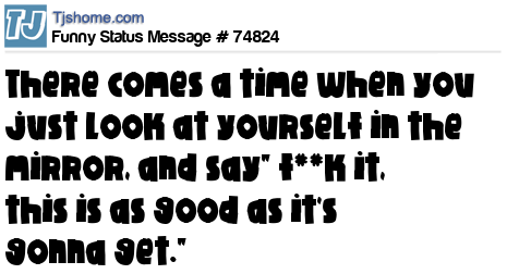 - # 74877 There comes a time when you just look at yourself in the mirror, and say"f**k it, this is as good as it's gonna get.".