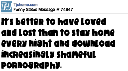- # 85218 Shakespeare once said: "It's better to have loved and lost than to stay home every night and download increasingly shameful pornography."