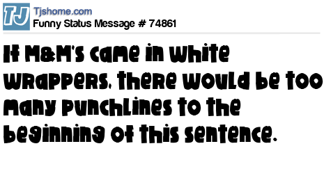 X  If M&M's came in white wrappers, there would be too many punchlines to the beginning of this sentence.