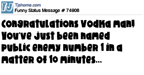X  congratulations Vodka man! You've just been named public enemy number 1 in a matter of 10 minutes...