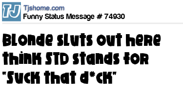 X Blonde sluts out here think STD stands for "Suck that d*ck"