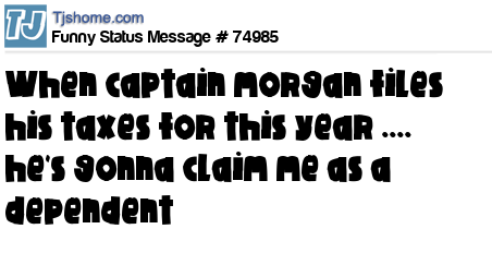 X when captain morgan files his taxes for this year .... he's gonna claim me as a dependent
