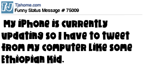 X My iPhone is currently updating so I have to tweet from my computer like some Ethiopian kid.