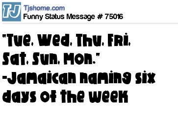 X "Tue, Wed, Thu, Fri, Sat, Sun, Mon." -Jamaican naming six days of the week