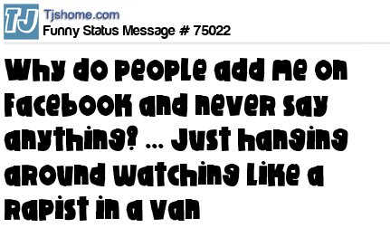 X says Why do people add me on Facebook and never say anything? ... Just hanging around watching like a rapist in a van