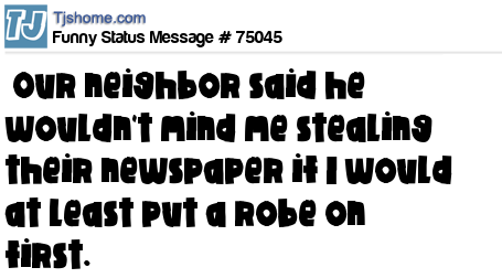 X Our neighbor said he wouldn't mind me stealing their newspaper if I would at least put a robe on first.
