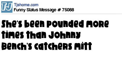 X is She's been pounded more times than Johnny Bench's catchers mitt