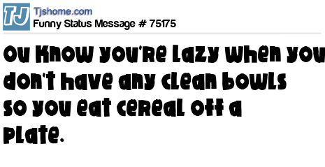 X ou know you're lazy when you don't have any clean bowls so you eat cereal off a plate.
