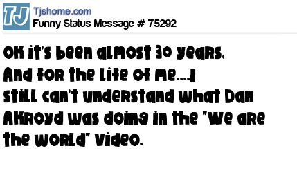 X is Ok it's been almost 30 years, And for the life of me....I still can't understand what Dan Akroyd was doing in the "We are the world" video.