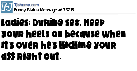 X is Ladies: During sex, keep your heels on because when it's over he's kicking your a$$ right out.