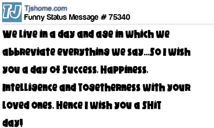 X says we live in a day and age in which we abbreviate everything we say...So I wish you a day of Success, Happiness, Intelligence and Togetherness with your loved ones. Hence I wish you a SHìT day!
