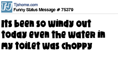 - # 9654 notices that its been so windy of late that even the water in his toilet was choppy!