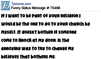 X is If I want to be part of your religion I would be the one to go to your church by myself. It doesn't bother if someone come to knock at my door, is the annoying way to try to change my believes that bothers me.