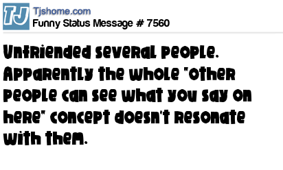 - # 78106 Just unfriended 3 people for chatting under my status.