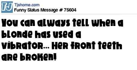 X You can always tell when a blonde has used a vibrator... Her front teeth are broken!