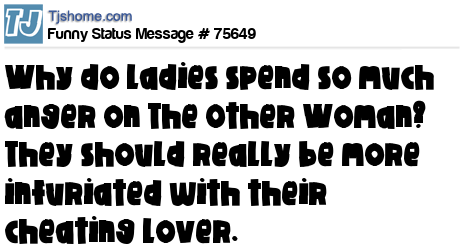 X Why do ladies spend so much anger on The Other Woman? They should really be more infuriated with their cheating lover.