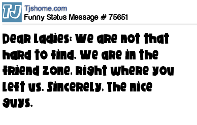 - # 59188 I'm tired of girls complaining that theres no good guys left...hello..they're where you left them, IN THE FRIEND ZONE