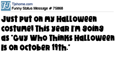 X says Just put on my Halloween costume! This year I'm going as "Guy Who Thinks Halloween Is On October 19th."
