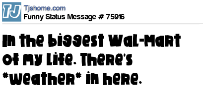 X In the biggest Wal-Mart of my life. There's *weather* in here.