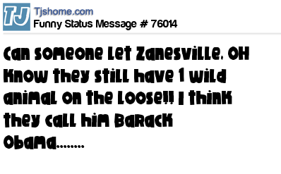 X  Can someone let Zanesville, OH know they still have 1 wild animal on the loose!! I think they call him Barack Obama........