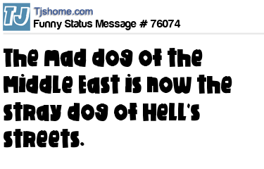 X  The mad dog of the Middle East is now the stray dog of Hell's streets.