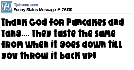X Thank God for Pancakes and Tang.... They taste the same from when it goes down till you throw it back up!