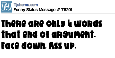 X is There are only 4 words that end of argument. Face down, Ass up.