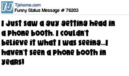 X I just saw a guy getting head in a phone booth. I couldn't believe it what I was seeing...I haven't seen a phone booth in years!