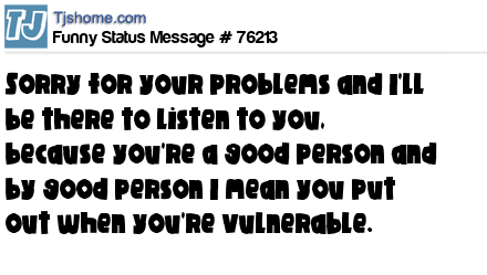 X  Sorry for your problems and I'll be there to listen to you, because you're a good person and by good person I mean you put out when you're vulnerable.