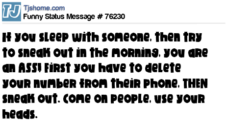 X If you sleep with someone, then try to sneak out in the morning, you are an ASS! First you have to delete your number from their phone, THEN sneak out. Come on people, use your heads.