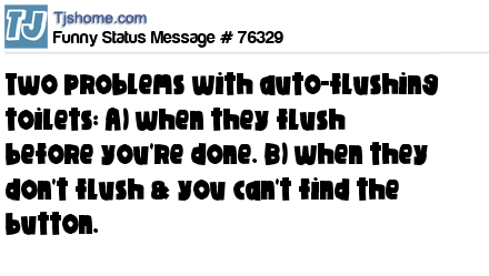 X says Two problems with auto-flushing toilets: A) when they flush before you're done. B) when they don't flush & you can't find the button.