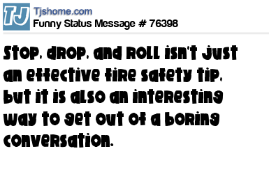 - # 64720 "Stop, Drop, and Roll" is not JUST an effective fire safety technique, but also a very memorable way of getting out of a boring conversation. :P