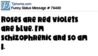 X Roses are red violets are blue, I'm schizophrenic and so am I.