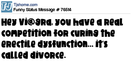X Hey Vi@gra, you have a real competition for curing the erectile dysfunction... it's called divorce.