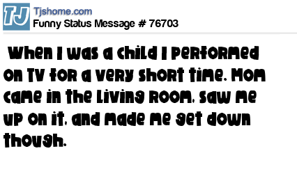 X is When I was a child I performed on TV for a very short time. Mom came in the living room, saw me up on it, and made me get down though.