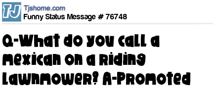 X is Q-What do you call a mexican on a riding lawnmower? A-Promoted