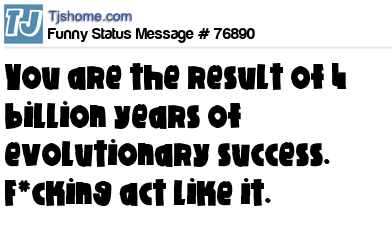- # 47000 You are the result of 4 billion years of evolution. The least you can do is act like it.