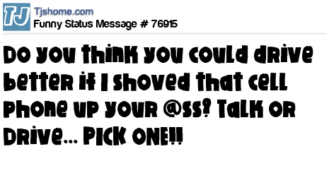 X Do you think you could drive better if I shoved that cell phone up your @ss? Talk or Drive... PICK ONE!!