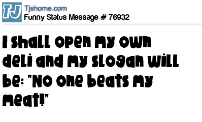 X says I shall open my own deli and my slogan will be: "No one beats my meat!"