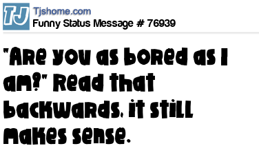 - # 31878 ARE you AS BORED AS I AM? Read these words backwards and it still makes sense.