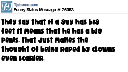 - # 50426 You know what they say about a man and his feet, That's why I don't find my fear of being raped by a clown irrational.