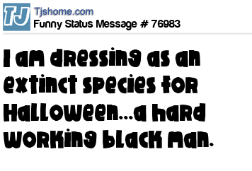X is I am dressing as an extinct species for Halloween...a hard working black man.