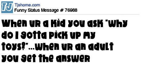 X says when ur a kid you ask "why do I gotta pick up my toys?"...when ur an adult you get the answer