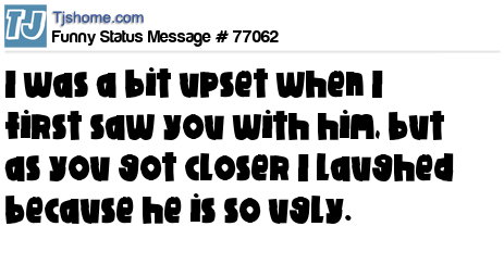 X is I was a bit upset when I first saw you with him, but as you got closer I laughed because he is so ugly.