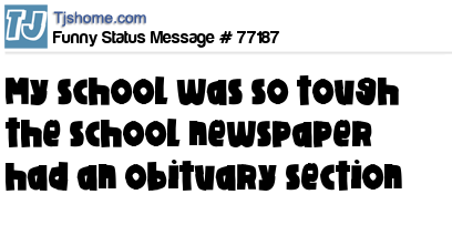 X My school was so tough the school newspaper had an obituary section