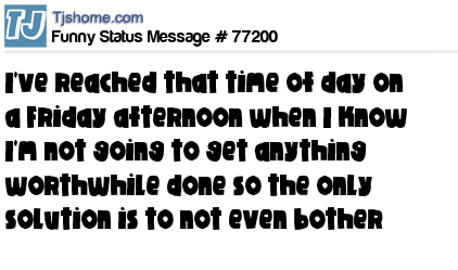 X is I've reached that time of day on a Friday afternoon when I know I'm not going to get anything worthwhile done so the only solution is to not even bother