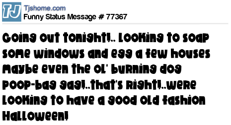 X is Going out tonight!.. looking to soap some windows and egg a few houses maybe even the ol' burning dog poop-bag gag!..that's right!..were looking to have a good old fashion Halloween!